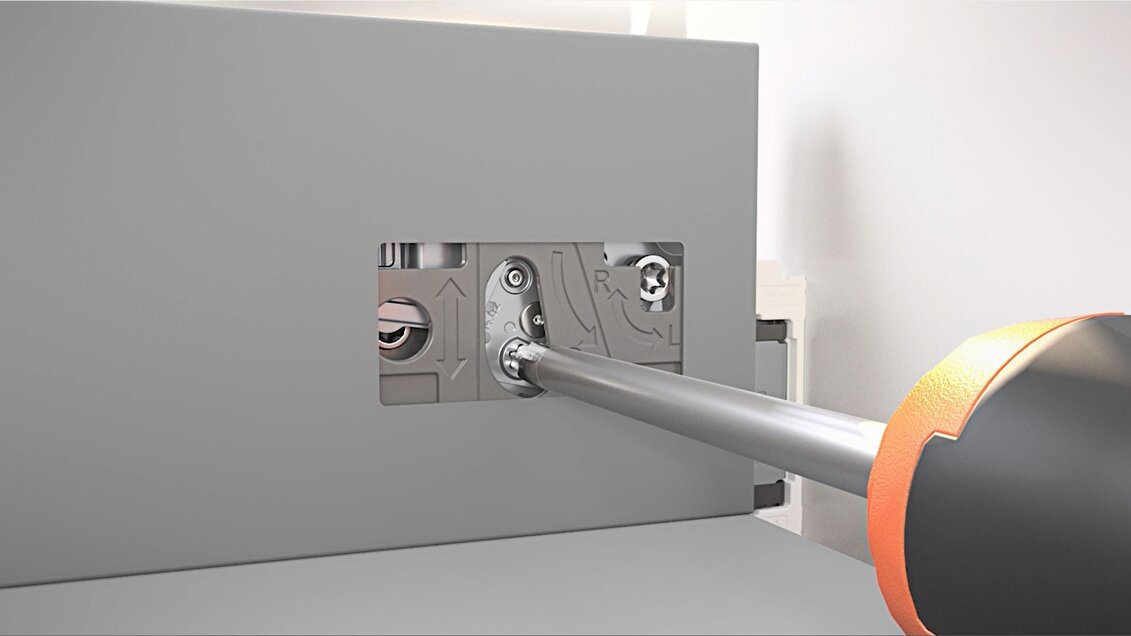 Nastavenie systému MERIVOBOX je vykonávané pomocou špeciálnych nástrojov, ktoré zaisťujú jednoduché a presné nastavenie. Nie sú potrebné žiadne zložité náradia ani skúsenosti s montážou nábytku.