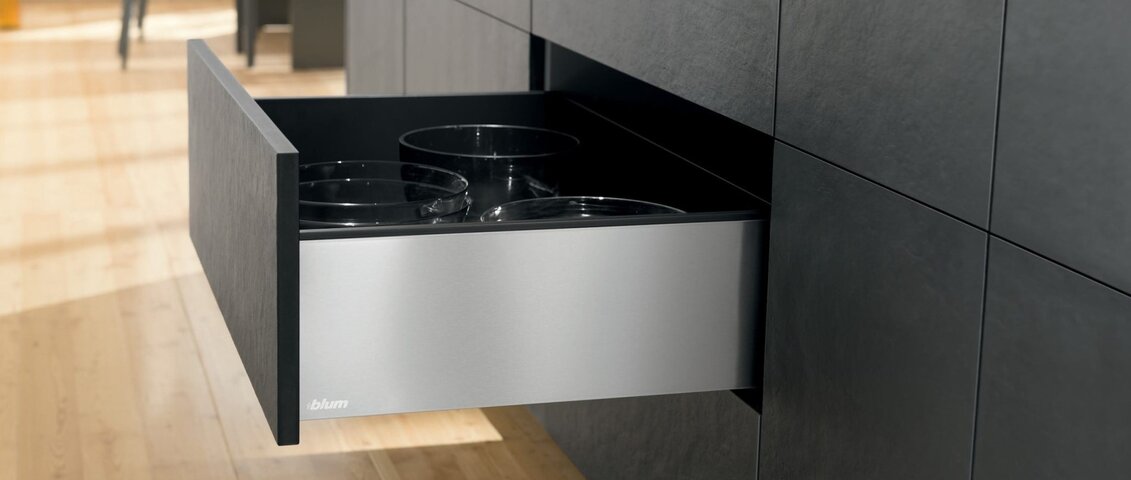 LEGRABOX vyniká individuálnym designom, ktorý sa úplne dokonale hodí k aktuálnym trendom v oblasti bývania. Jeho široké možnosti vám umožňujú tvoriť interiér presne podľa vašich predstáv. Bočné steny sú z vonkajšej aj vnútornej strany elegantne rovné a neuveriteľne tenké - iba 12,8 mm, čo dodáva nábytku pôsobivý a moderný vzhľad. Tieto úchvatné bočné steny sa dokonale zladia s ostatnými časťami nábytku, vytvárajúc harmonický celok, ktorý zaujme každého pozorovateľa.