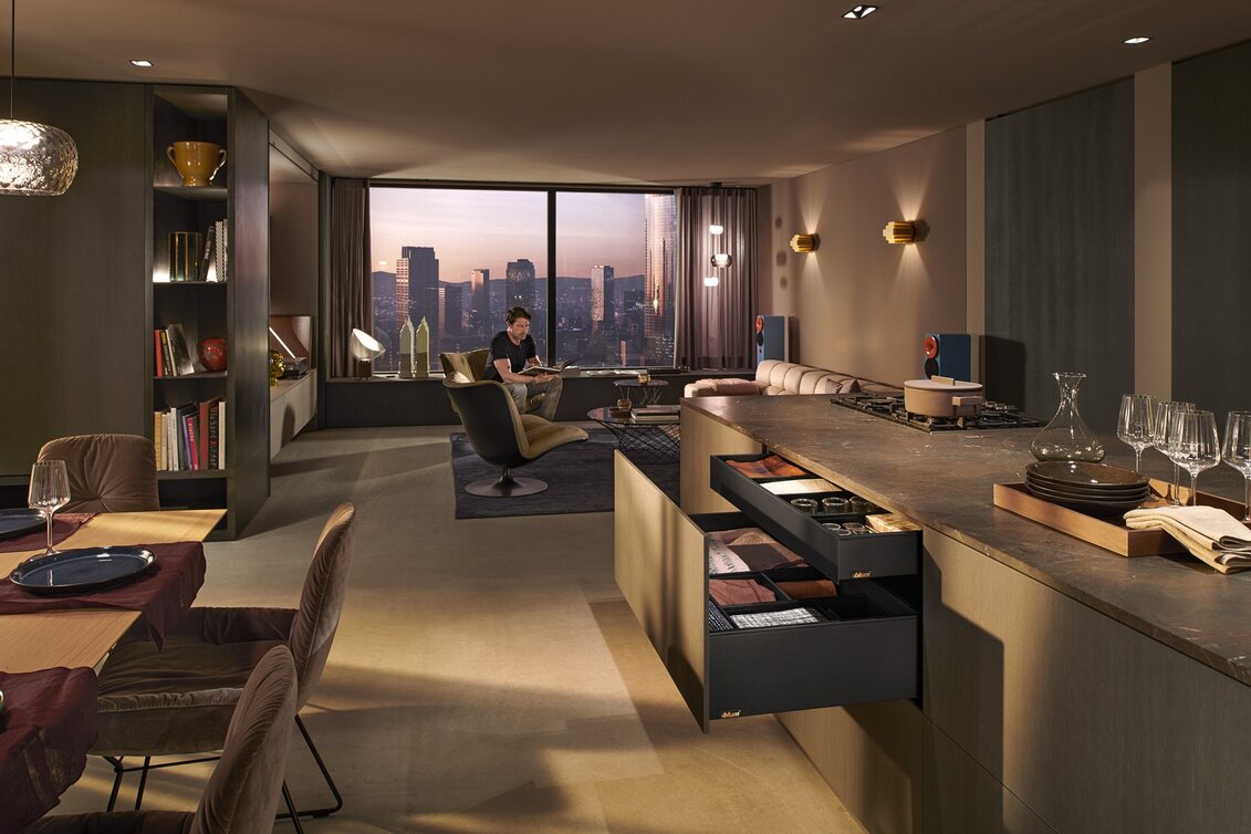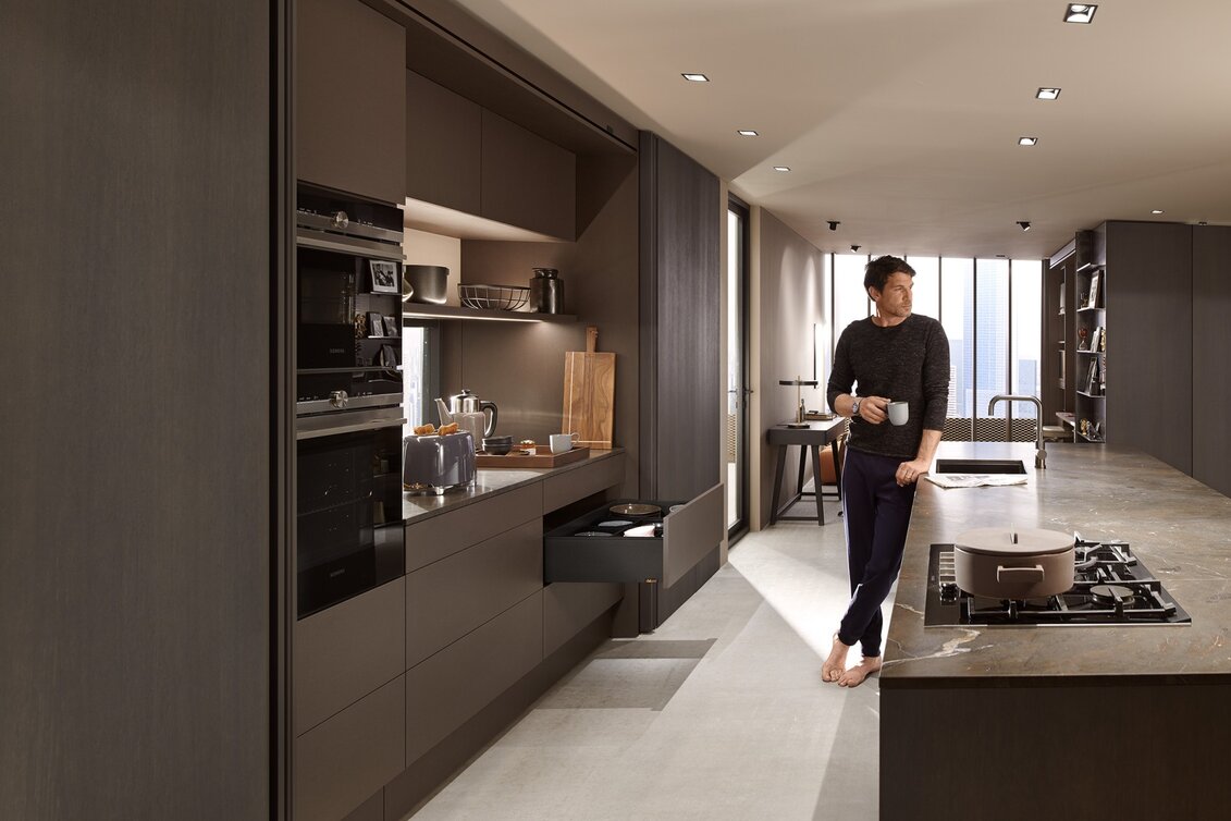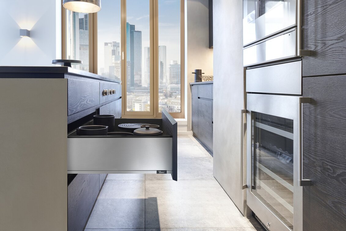 Táto kombinácia metalických povrchov a tlmených farieb dosahuje úžasnú súhru. Lesklá vonkajšia časť z ušľachtilej nerez ocele s anti fingerprint efektom vytvára žiarivý protiklad s decentným vnútorným priestorom, ktorý je ladený do karbónovo čiernej matnej farby.