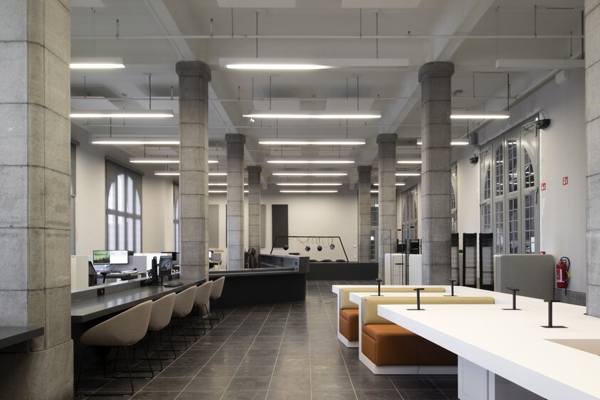 Vďaka širokej palete farieb a štruktúr pomáha Kerrock dotvárať priestor a vzťahy ľudí, ktorí sa v ňom pohybujú.